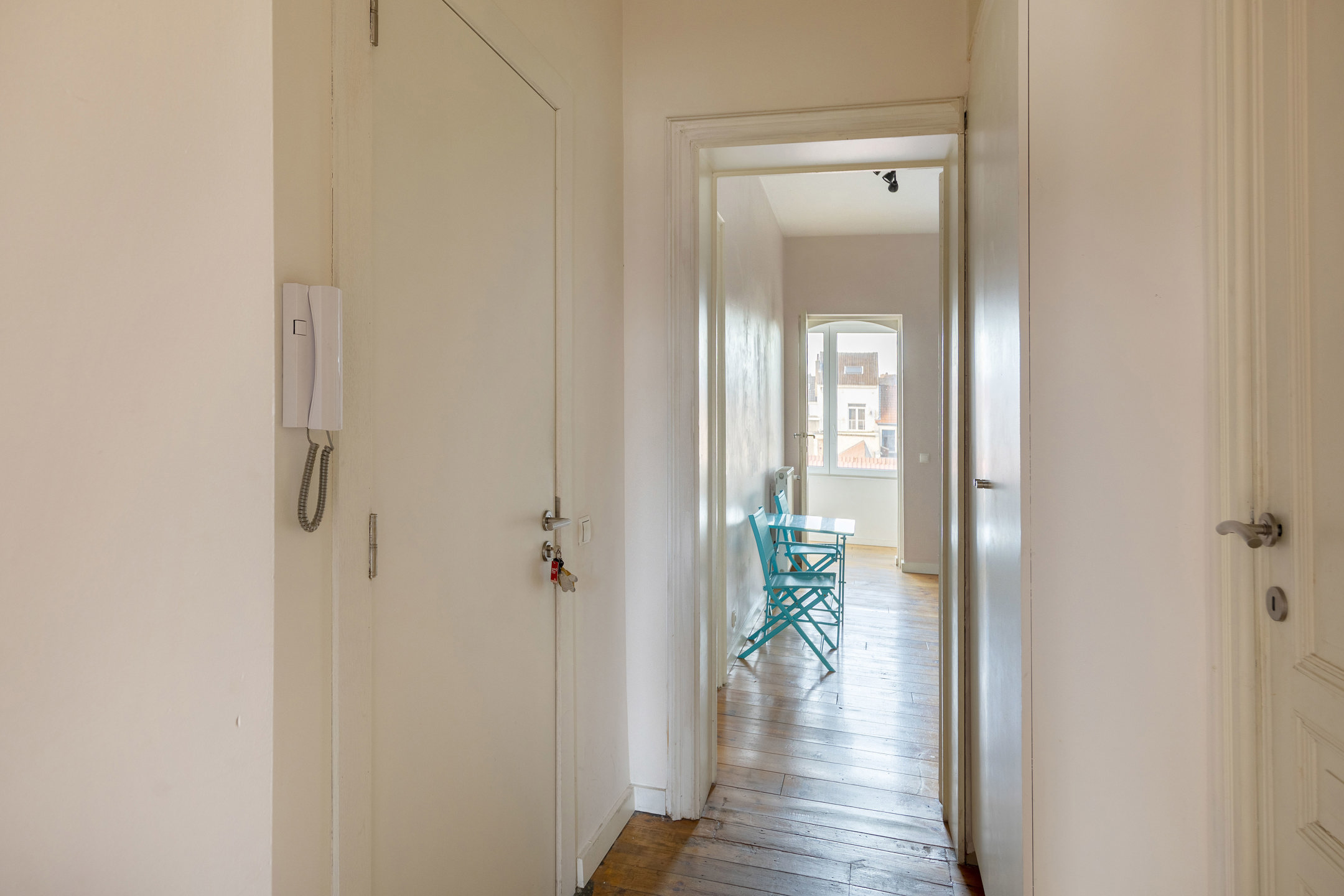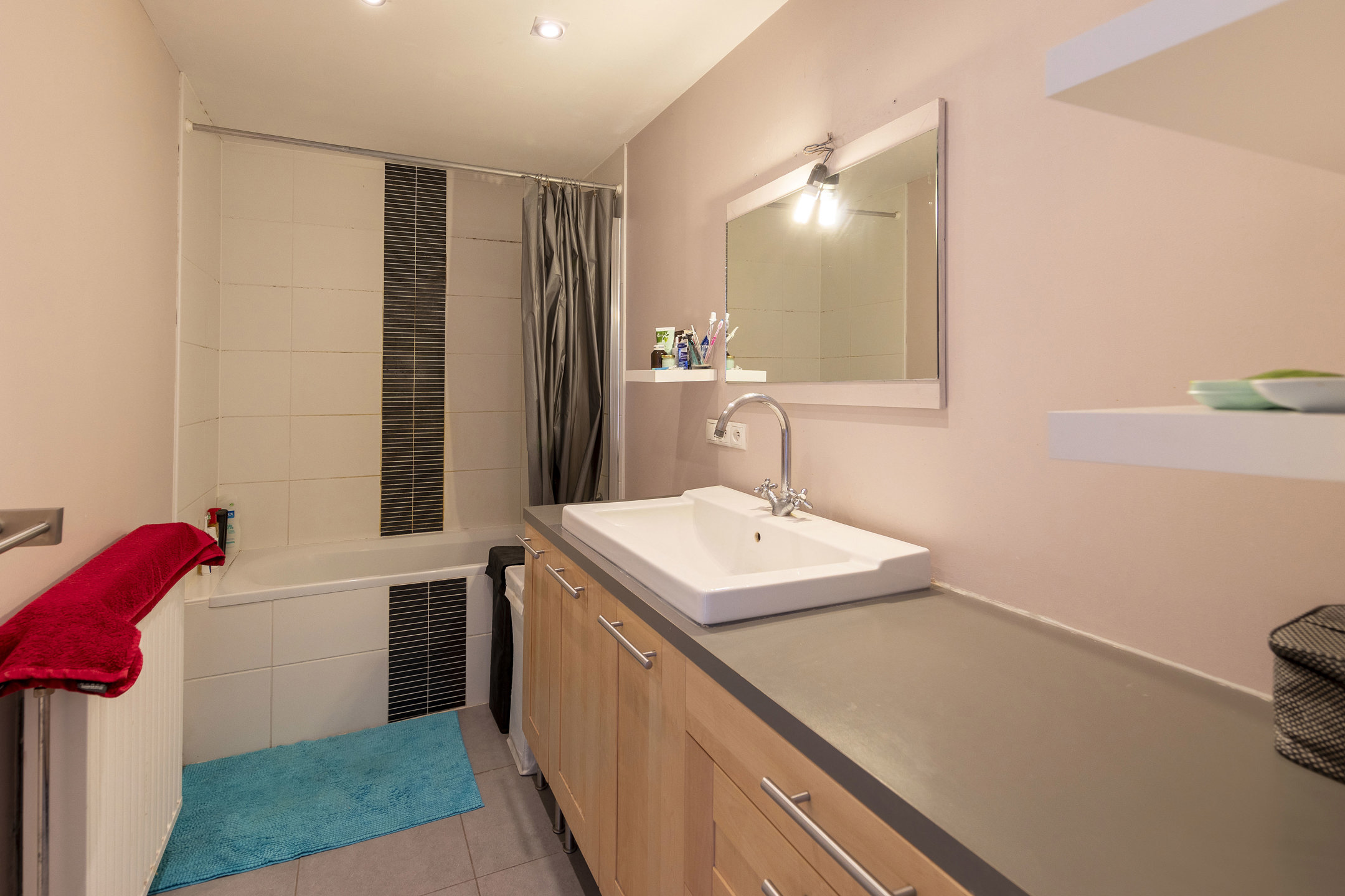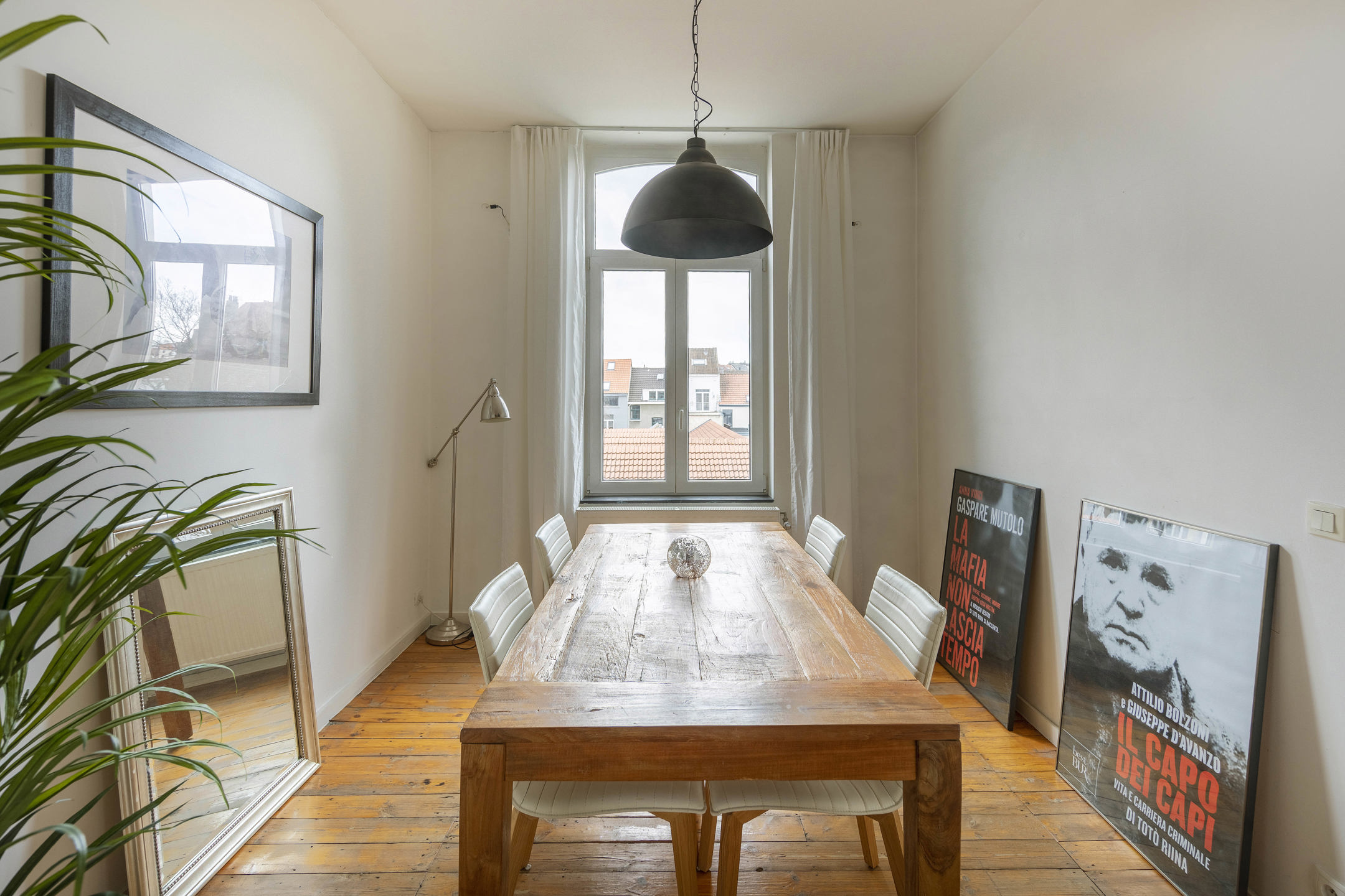 IXELLES, beautiful APARTMENT (2 bedrooms/1 bathroom) of ± 110 m² gross, located on the 2nd floor of a small co-ownership without lift. It consists of an entrance hall with cloakroom and guest toilet, a pleasant living room with a dining room, a fully equipped kitchen, a covered terrace withwith pantry, 2 bedrooms (± 17 and 11,5 m²) the largest with a new dressing room, a bathroom and a boiler room/laundry room with washing machine. Miscellaneous: new individual condensing boiler, double glazing, high ceilings. In the living room, new false ceiling with LED spotlights. Bicycle/buggy room on the ground floor and a 9,5 m² cellar in the basement.