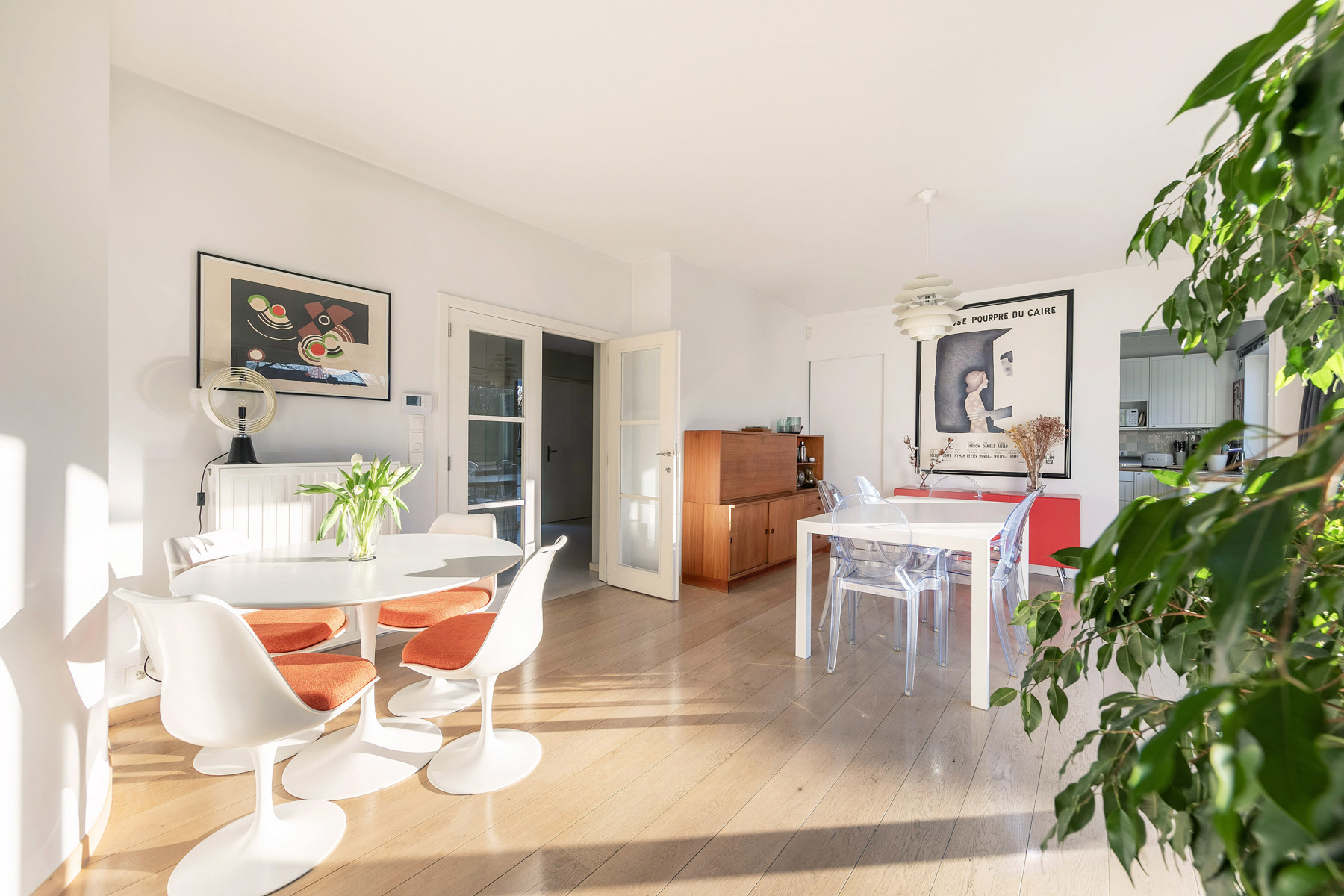 Dining room ± 25m² with direct access to the terrace and garden, parquet flooring