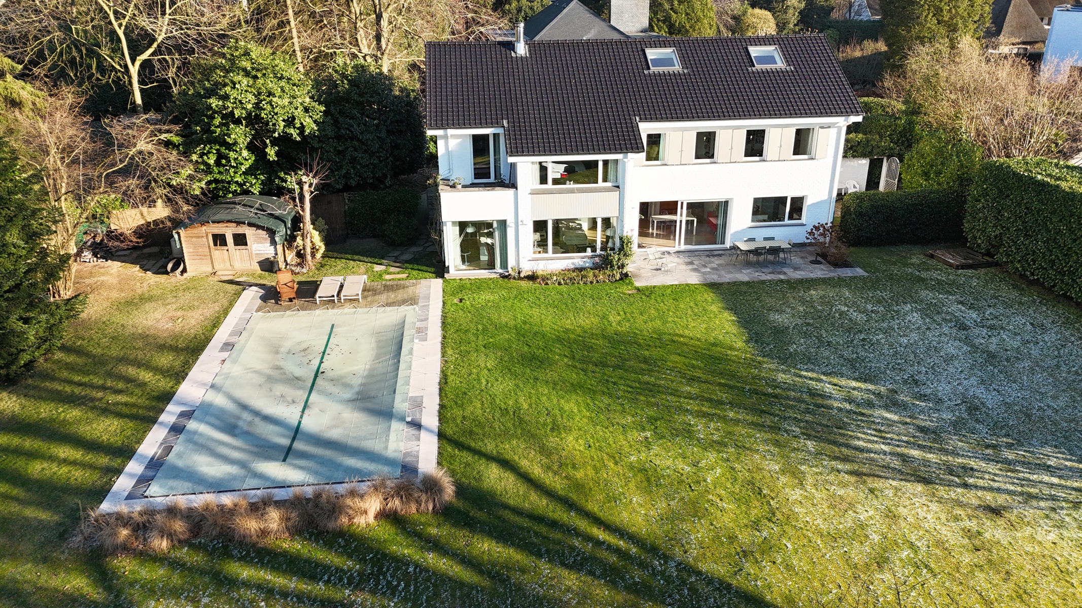 Sold. Located in RHODE-SAINT-GENÈSE, in the prestigious Jonet – Espinette neighborhood, this magnificent VILLA with 5 bedrooms, 3 bathrooms, an office, a large well-oriented garden with an outdoor pool is a real estate gem. The elegant architecture of the house opens onto a carefully landscaped 24-acre garden, facing west to enjoy optimal sunlight throughout the day. The outdoor pool adds an aesthetic and friendly touch, creating a highly prized leisure space for moments of relaxation and entertainment with family or friends. Inside, this spacious and incredibly bright house stands out for its well-thought-out internal organization. On the ground floor, you will find generous reception areas that open onto a large 30m² terrace, a super-equipped kitchen with a central island, a pantry, and even a first bedroom with its shower room. Upstairs, the master suite with dressing room, private bathroom, and small terrace, as well as three other large bedrooms and an office, offer a comfortable living space for the whole family. On the top floor, a section of the last level has been transformed into a spacious multipurpose room, perfect for a playroom or dormitory. The house is not lacking in storage with its 2 attics and 3 dry cellars in the basement. It is also equipped with an alarm system. It has a garage for one car, at least 4 outdoor parking spaces, numerous outdoor lights, and an automated gate for your comfort. In the garden, a 20m² shed adds an additional practical touch.