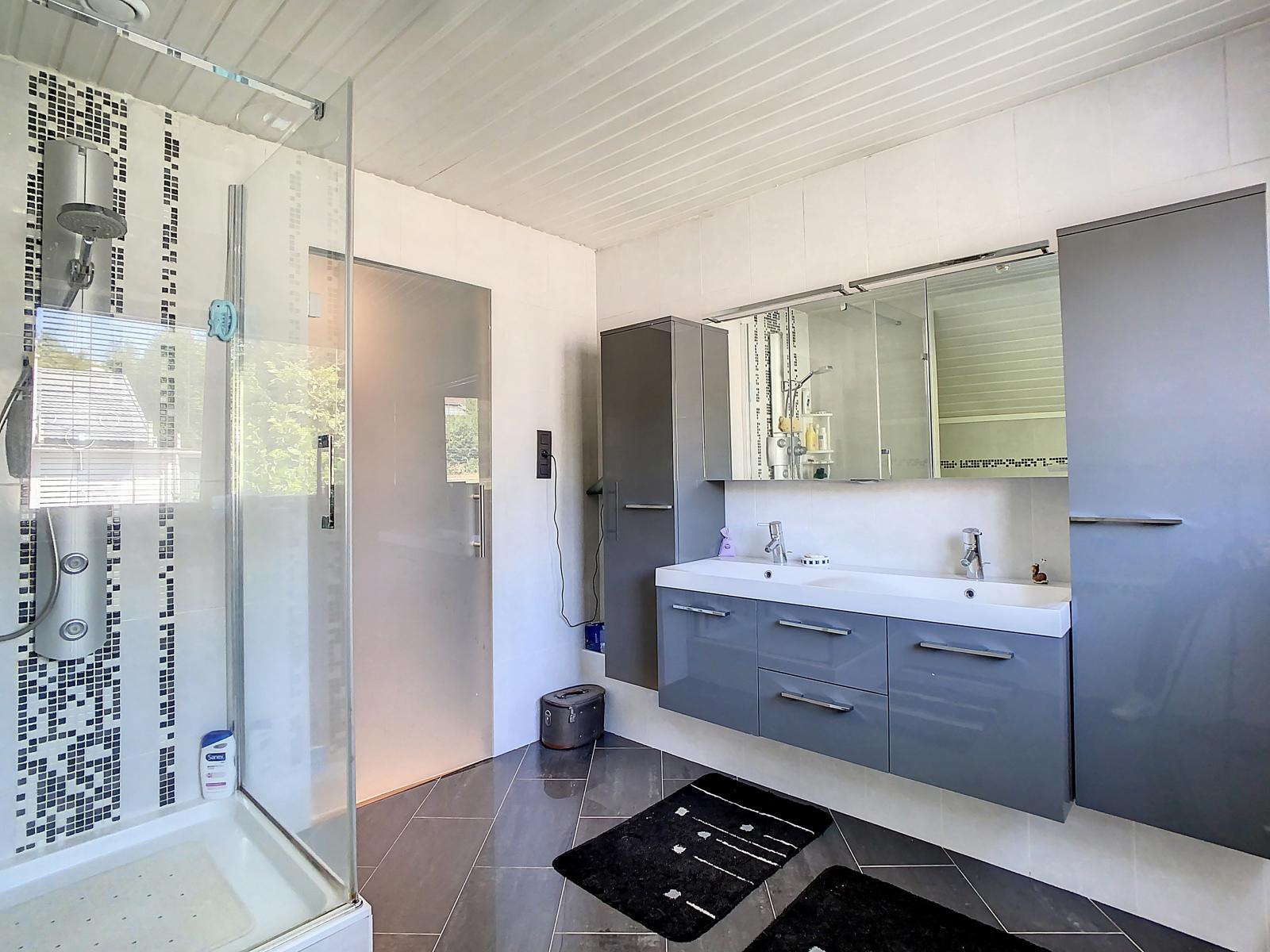 This 4 facade house is composed as follows: On the garden level: a spacious garage (several additional outdoor parking spaces for visitors), a laundry room, a cellar and a multipurpose room (games room, fitness room, bedroom, office...) with shower room and sauna. On the ground floor: an entrance hall, a toilet, a fully equipped kitchen, a large living room with open fire giving access to a magnificent west-facing terrace and garden, a bedroom. On the first floor: a night hall, 3 additional bedrooms, an office, a bathroom and a shower room.