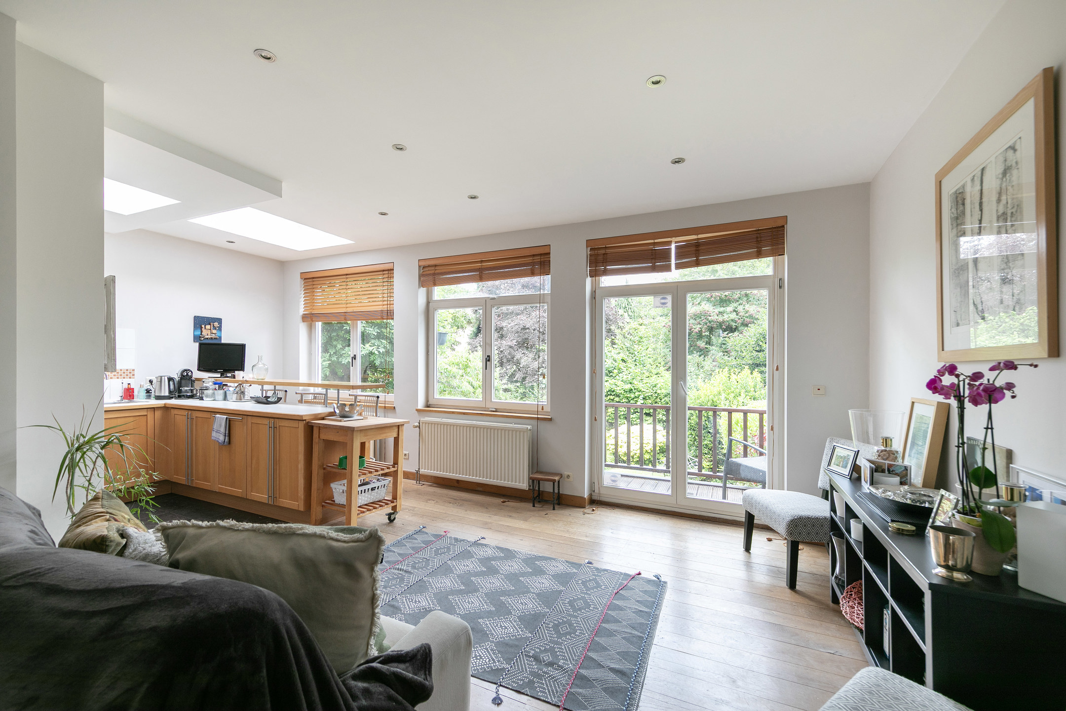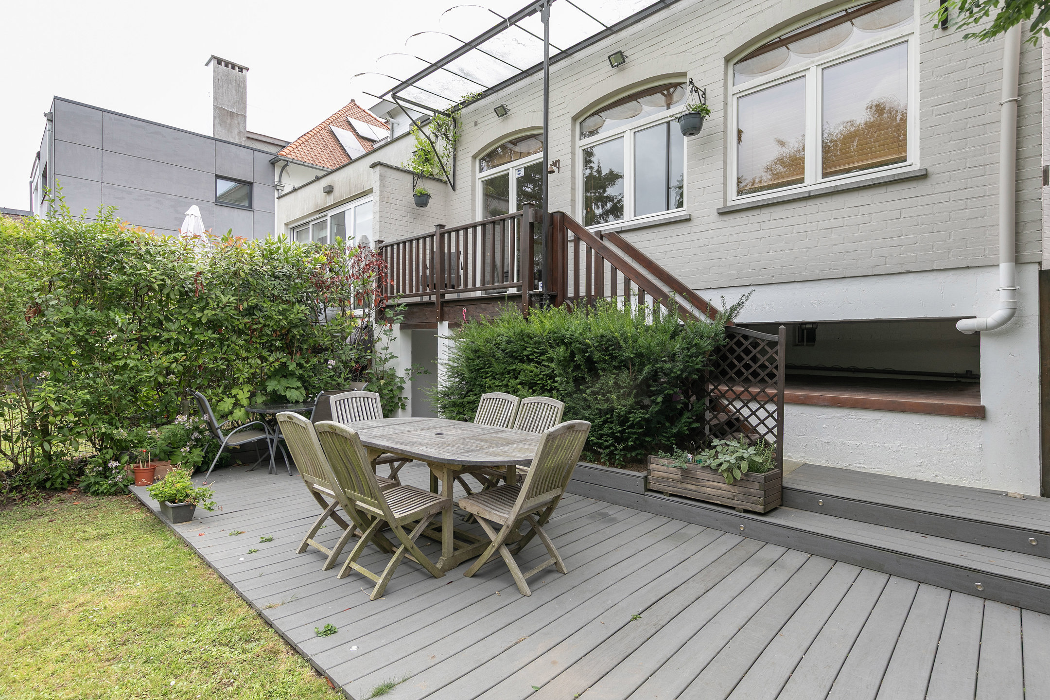Cette charmante maison 3 façades de style « cottage anglo-normand » développe ±200 m² (selon PEB) et offre un cadre de vie lumineux et chaleureux. Le rez-de-chaussée s’organise autour d’un bel espace de réception de ±60 m² avec salon, salle à manger et cuisine américaine donnant sur une terrasse et un jardin arboré de ±110 m². Belle hauteur sous plafond (3,11 m), parquet d’origine, luminaires, stores et rideaux de soie inclus dans la location.