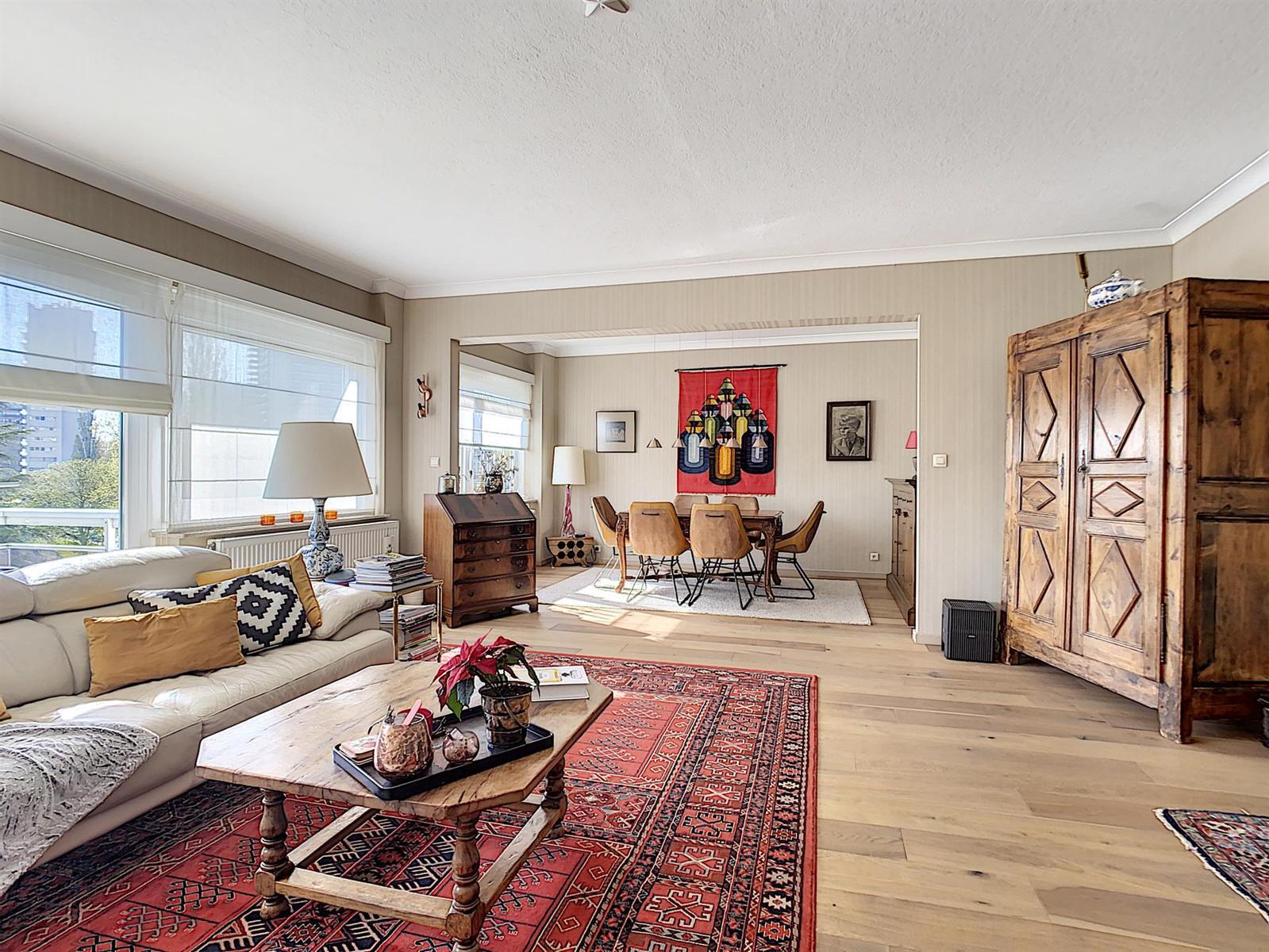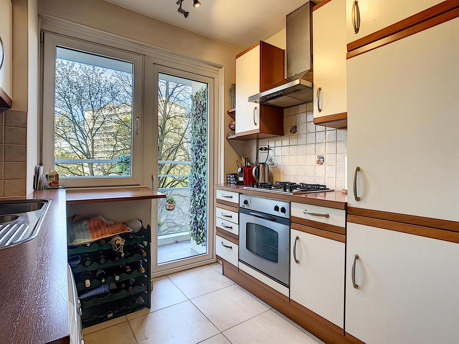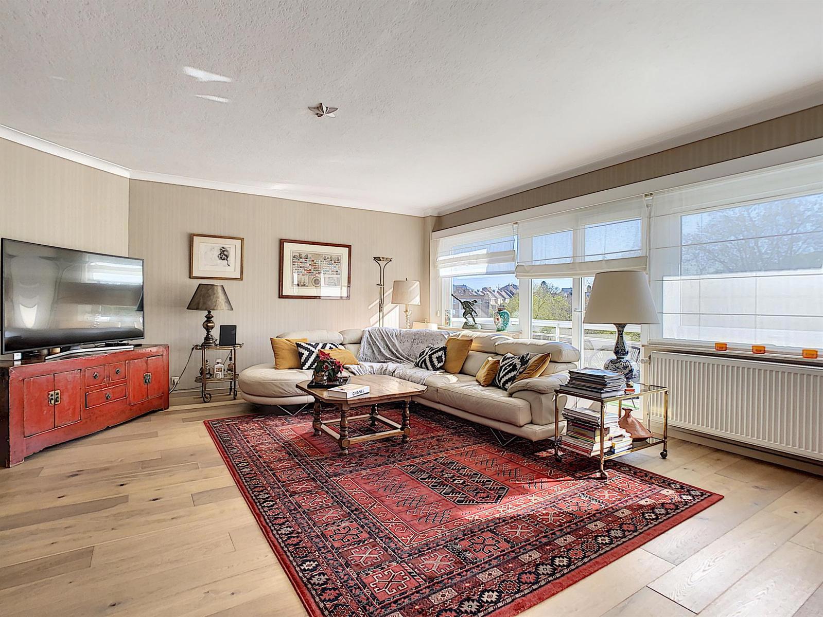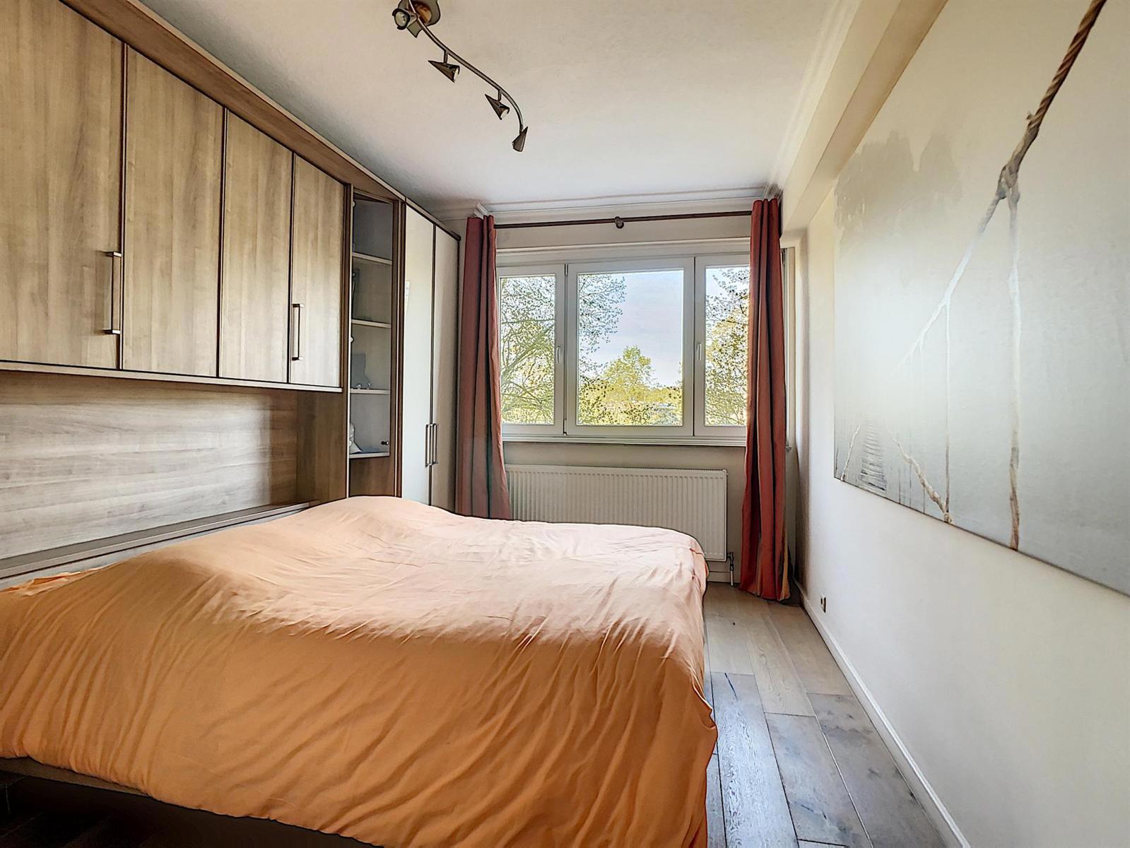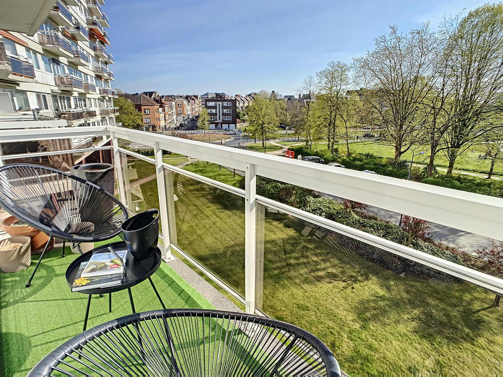 Venez découvrir ce très bel et spacieux appartement traversant de +/-105m2 situé entre le magnifique Parc des Etangs et le Parc Joseph Lemaire, à proximité immédiate de toutes les commodités (commerces, écoles, transports en commun, accès aisé vers le R0 et la E19). Situé au 2e étage cet appartement se compose d'un hall d'entrée, d'un vaste séjour de 43m2 avec terrasse orientée sud-ouest et offrant une vue sur le Parc des Etangs, d'une cuisine équipée avec une deuxième terrasse orientée nord-est avec vue sur le Parc Joseph Lermaire, d'un hall de nuit, de deux belles chambres de 14m2 et 13,5m2, d'une salle de douche et d'un wc séparé. Cave en sous-sol de l'immeuble. Rénovations récentes: porte blindée (2013), radiateurs avec vannes thermostatiques et châssis double vitrage PVC (2007), chaudière individuelle au gaz (2004), cuisine et salle de douche récentes également. INFO/VISITE: 0473 28 25 23