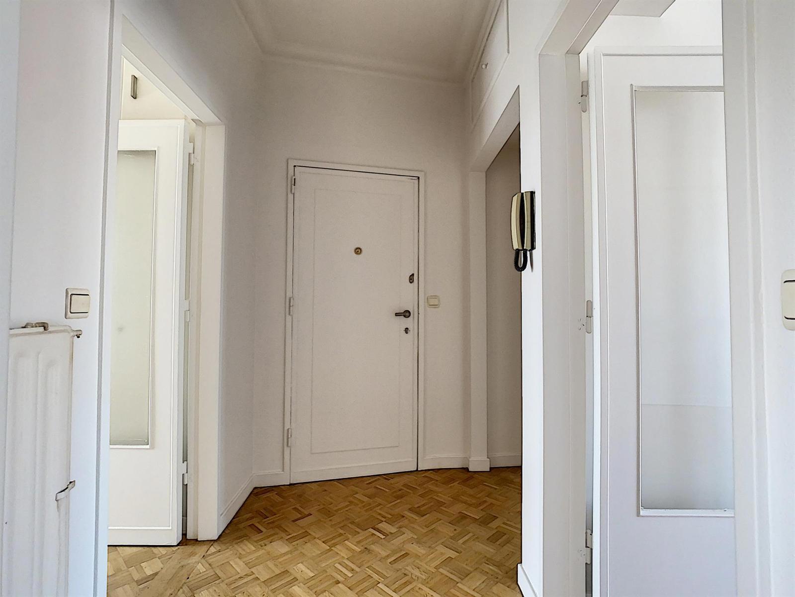 Situé au dernier étage d'un bel immeuble des années 1960, cet appartement traversant se compose d'un hall d'entrée avec coin vestiaire, d'un séjour avec petite terrasse, d'une cuisine semi-ouverte, d'un hall de nuit avec placards intégrés, d'une salle d'eau avec wc, d'une belle chambre en façade arrière et d'une cave au sous-sol.