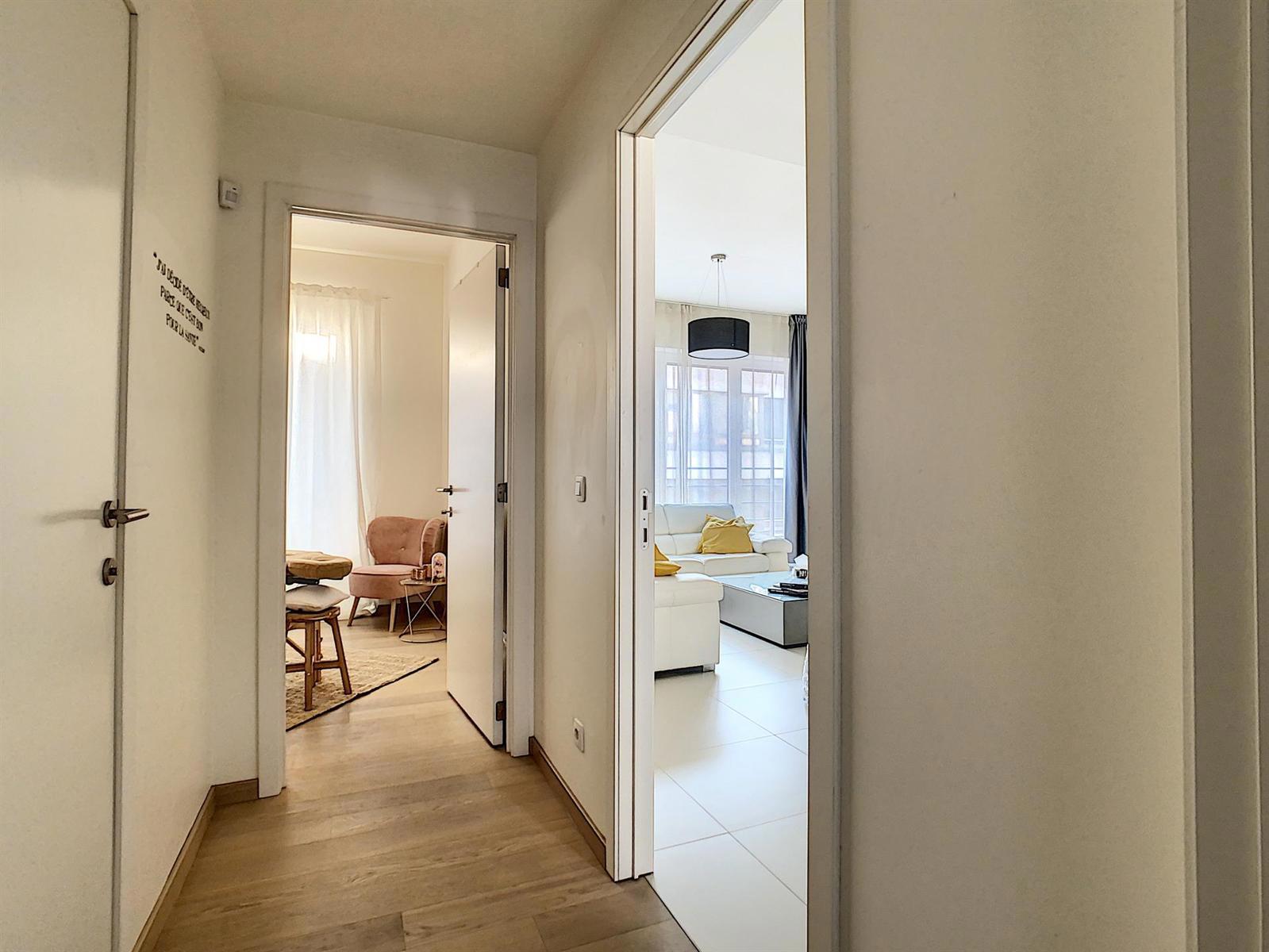 Venez découvrir ce superbe appartement 2 chambres d'une superficie de 110m2 avec terrasse de 20m2 orientée ouest, au 1er étage d'un immeuble moderne construit en 2015 et idéalement situé à proximité de toutes les facilités (commerces, écoles, parcs, transports en commun, station Villo!, station Cambio, E411).