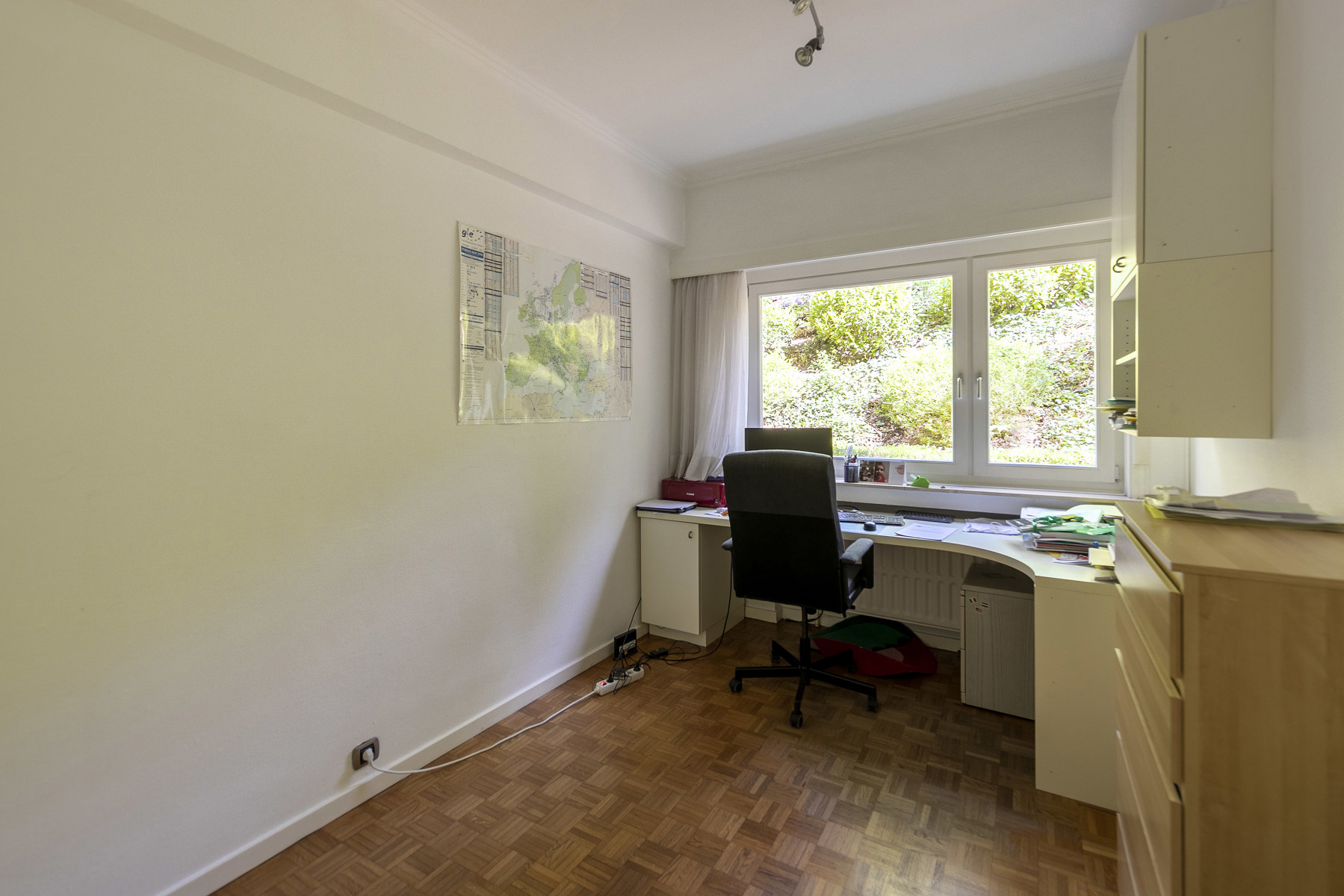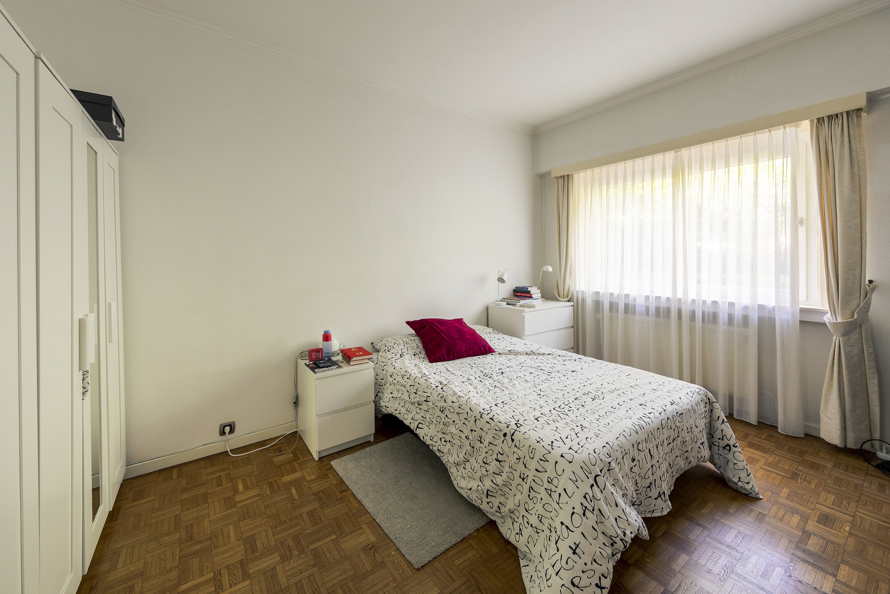 UCCLE, dans une rue sans issue, à proximité immédiate du Bois de la Cambre et de nombreuses facilités, spacieux et lumineux APPARTEMENT (3ch/1sdb/1sdd)de ± 165m² habitables situé au rez-de-chaussée avec un jardin de 800m² orienté sud et est. L'appartement se trouve dans un immeuble de 1962 signé Jasinski qui fait partie d'un ensemble de 3 unités entouré d'un parc privatif. Très belle localisation dans un cadre verdoyant à découvrir en exclusivité.