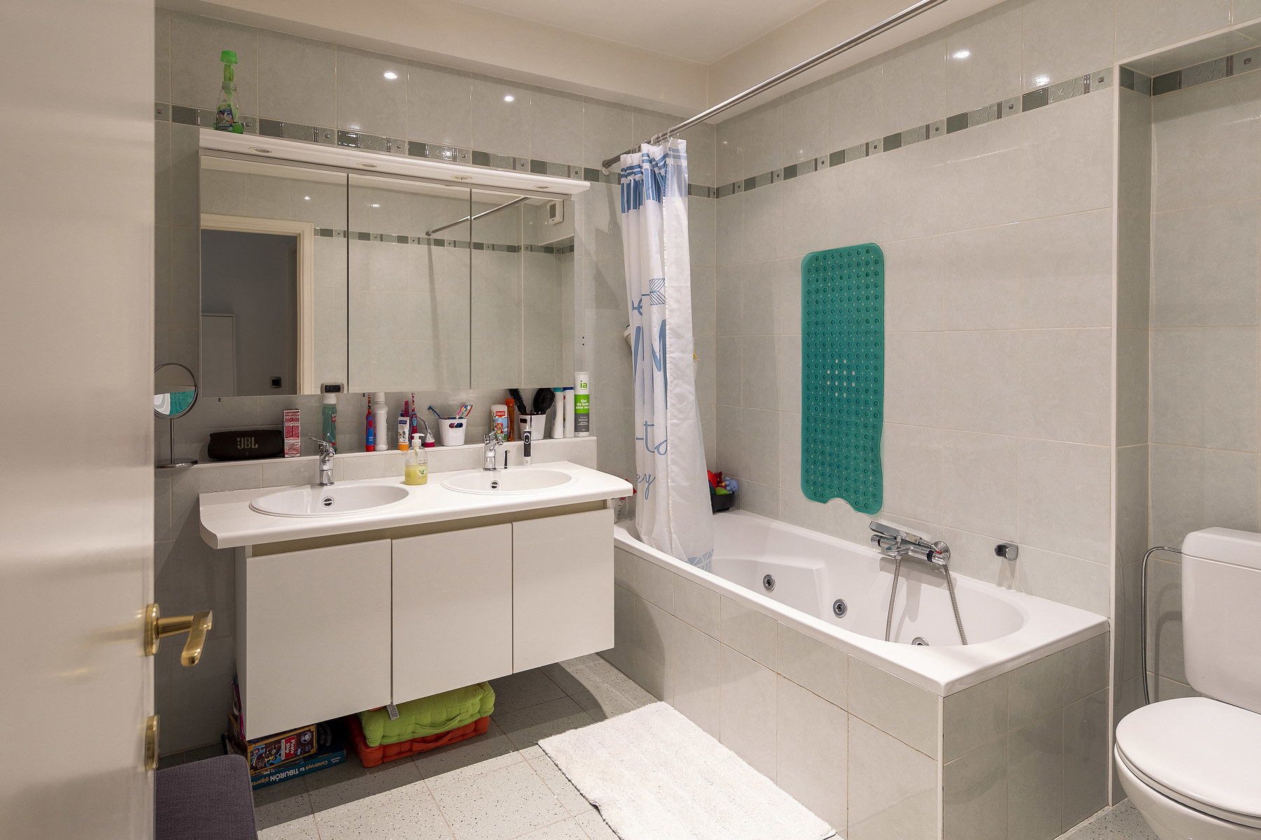 Techniques: porte blindée, vidéophone, double vitrage, volets, parquet. Chauffage au sol et radiateurs dans les chambres et pièces d’eau, chaudière commune à condensation (2009), adoucisseur d'eau, hsp : 2m82. Très bon état général de l’appartement. Electricité conforme. PEB: "G", émission de CO₂ : 102kg/(m².an), consommation d'énergie primaire annuelle par m²: 474 [kWhEP/(m².an)].