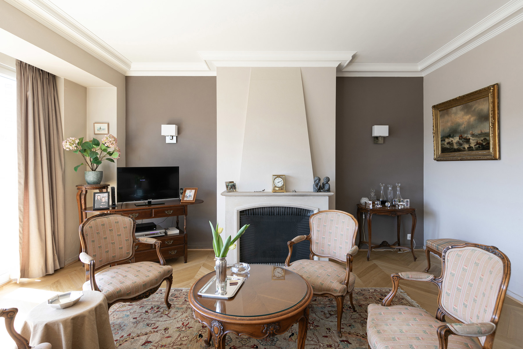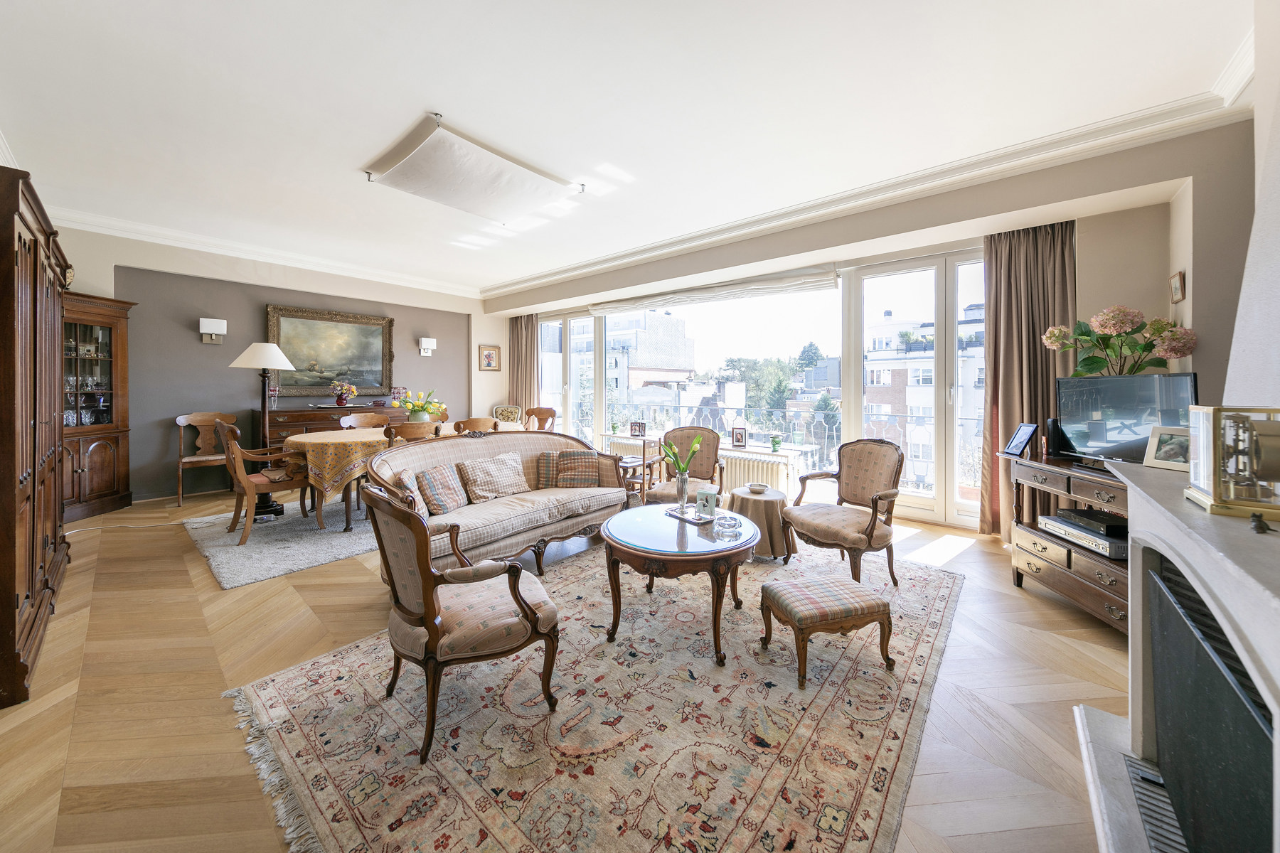UCCLE, au cœur d'un quartier recherché pour sa proximité avec les commerces vivants de la rue Vanderkindere, le Bois de la Cambre et les facilités de transport en commun, cet appartement de 120m² qui combine espace et lumière avec élégance est situé au 5ème étage d'un immeuble de caractère datant de 1967. Avec un salon spacieux de 40,5m², incluant un feu ouvert, s'ouvrant sur une terrasse de 14m² exposée au sud, une cuisine séparée de 10m² dotée d'un petit balcon et 2 chambres confortables de 19,5m² et 15,5m², chacune avec sa salle de bains, chaque pièce a été pensée pour offrir confort et bien-être assurant intimité et tranquillité. Facilités incluses : porte blindée, vidéophone, châssis double vitrage (2016), chauffage central au gaz avec un système de cogénération, cave et emplacement de parking (en option : 35.000€) au sous-sol.