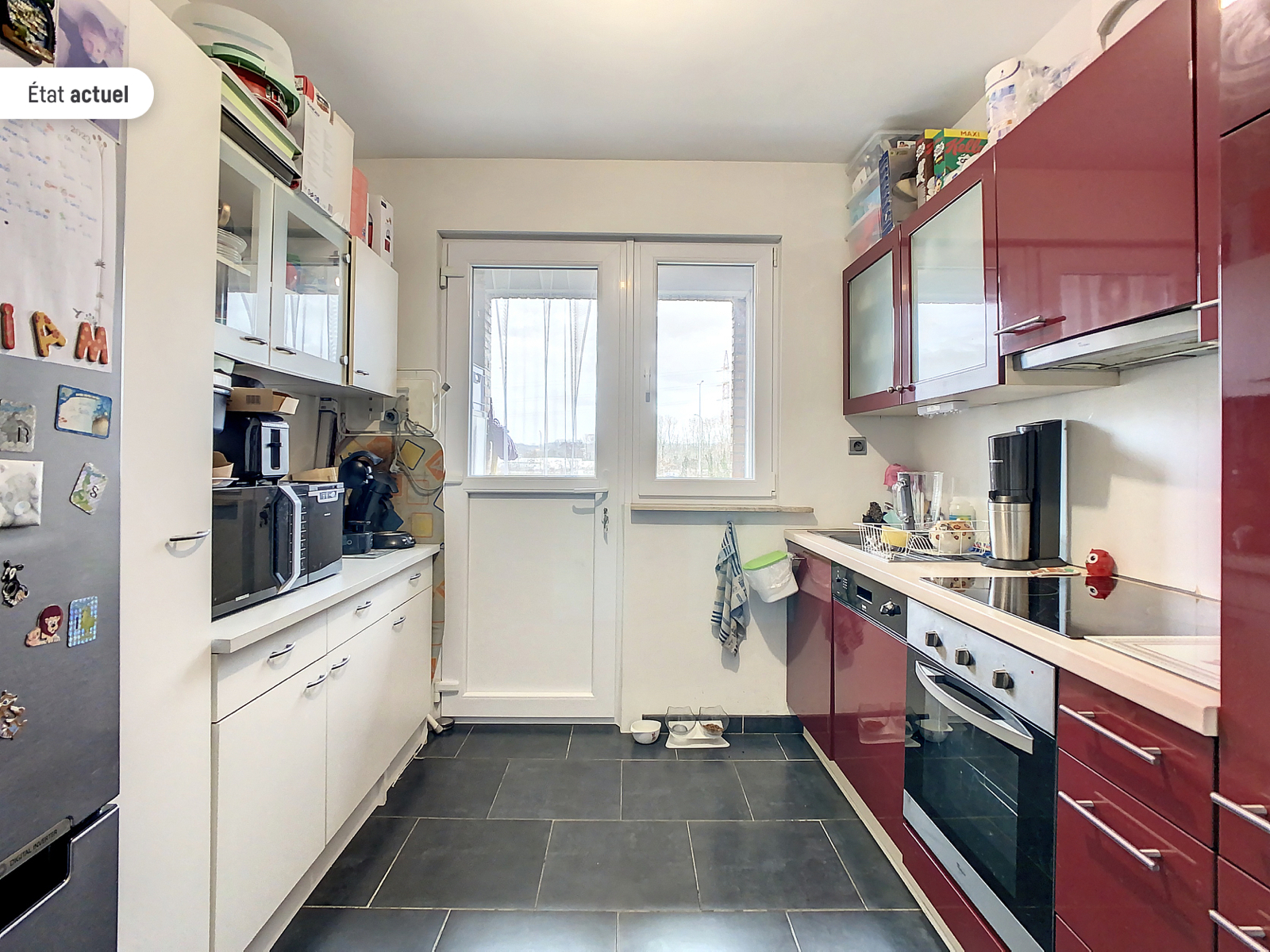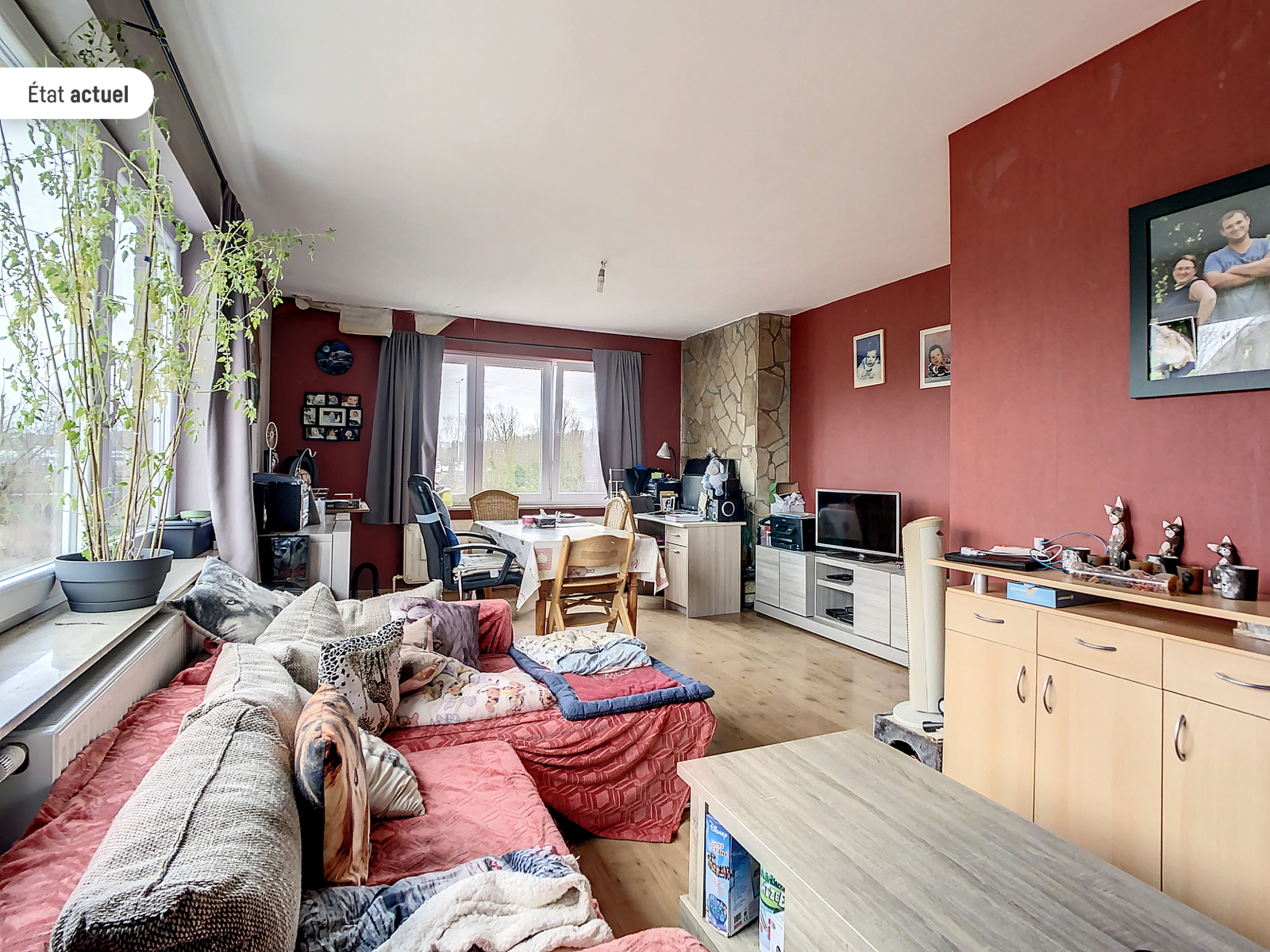 Vous êtes à la recherche d'un appartement 2 chambres offrant de beaux volumes dans un petit immeuble avec très peu de charges? Venez visiter cet appartement qui ne nécessite que quelques rafraîchissements pour devenir votre nouveau chez vous. Situé au 2e et denier étage d'un immeuble de la fin des années '70 (1977) dans une copropriété qui ne comporte que 3 unités. Pas d'ascenseur et pas de syndic, chauffage individuel au gaz (Bulex HR+ Thematek C24), charges très faibles (50€ par mois). L'appartement se compose comme suit: hall, séjour avec feu ouvert, cuisine séparée avec balcon, 2 belles chambres, salle de bain et wc séparé. Une cave et un box garage (20.000€ en sus) viennent compléter l'ensemble. La copropriété dispose également d'autres garages et d'un jardin commun. PEB D, électricité non conforme. Nouveaux châssis double virage PVC placés en 2016, toiture révisée en 2022 et gouttières refaites. INFOS/VISITES: 0473 28 25 23