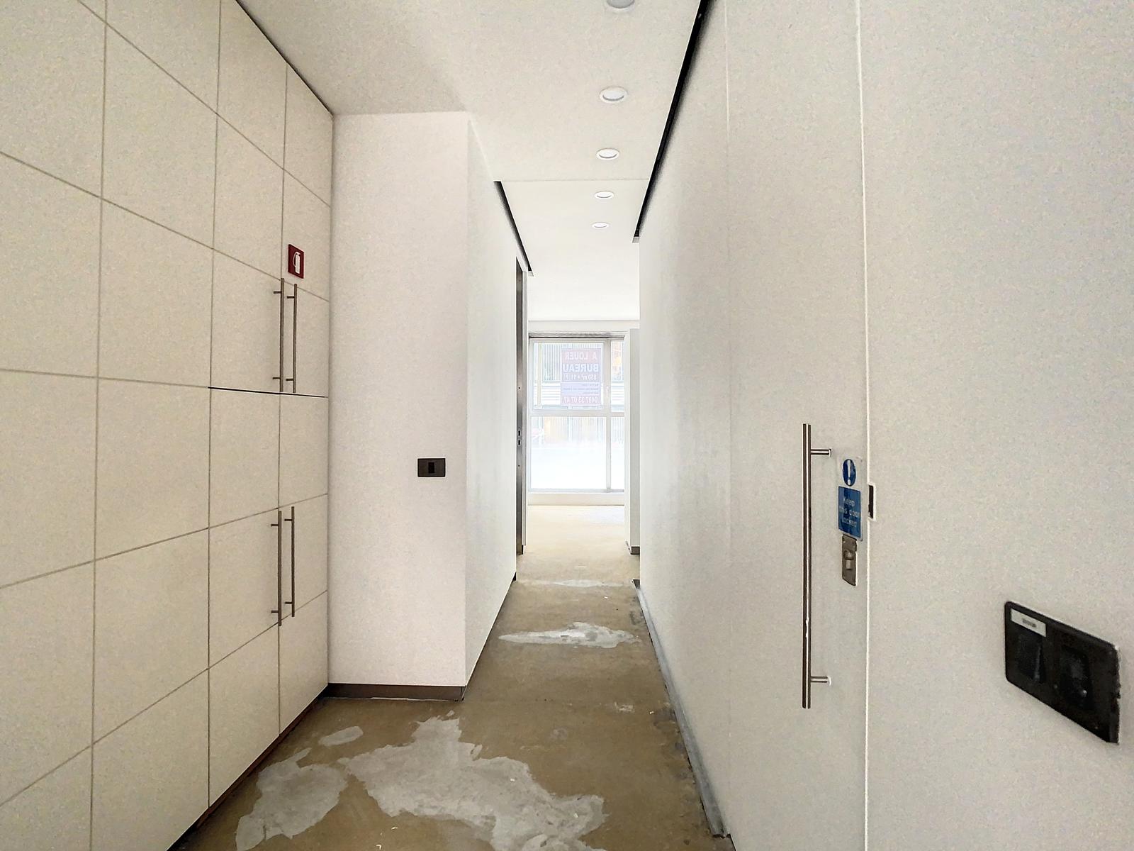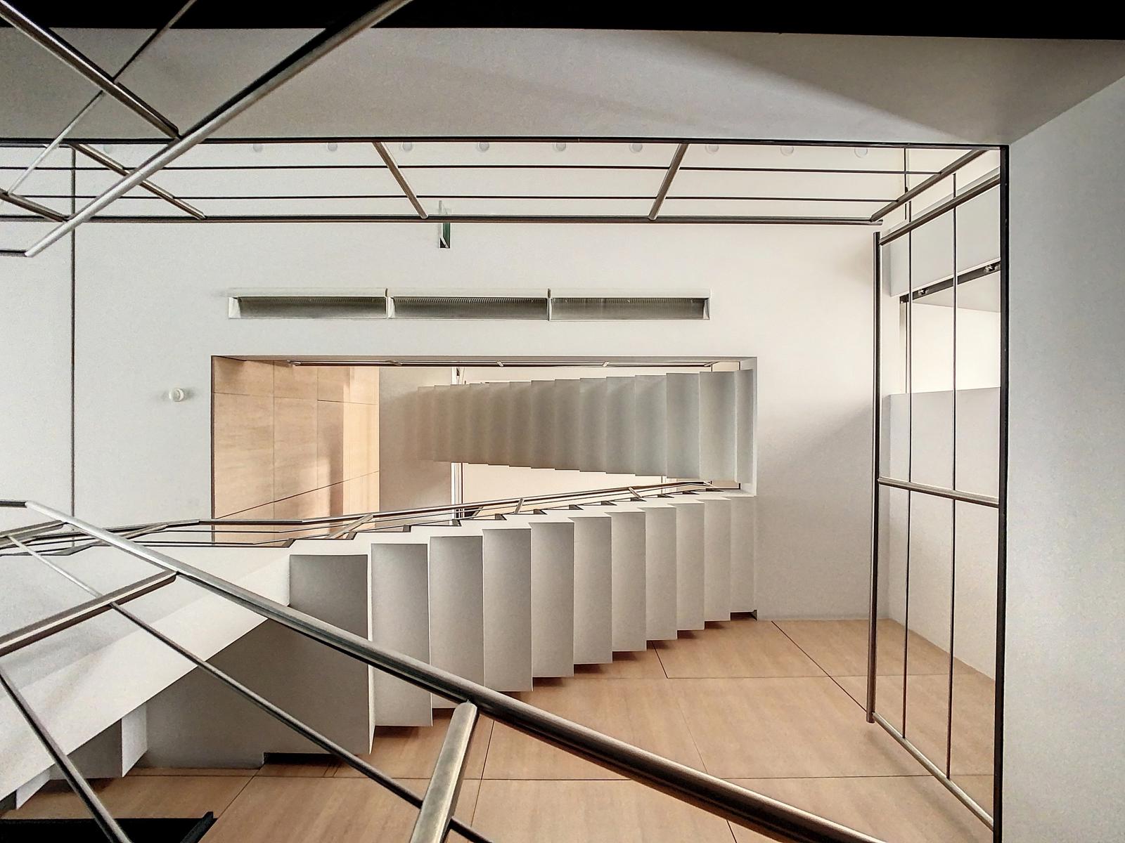Op het gelijkvloers: 180m2 in het hoofdgebouw aan de voorzijde (82m2 kantoren en 98m2 gemeenschappelijk) en 180m2 in het bijgebouw aan de achterzijde (124m2 binnenplaats + 56m2 autolift, trappenhuis, technische ruimte).